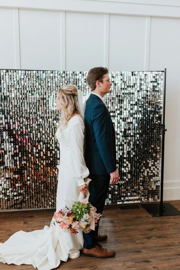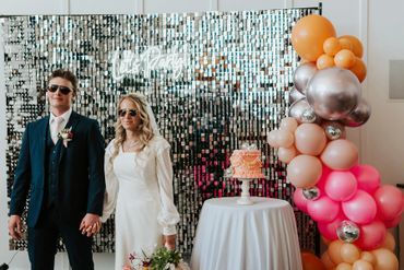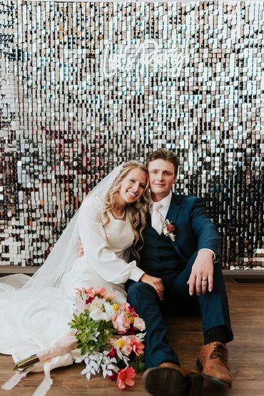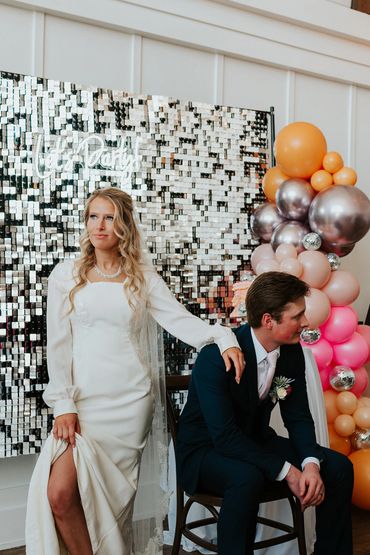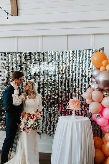 Photographer: Lizee Gardner Photography, Venue: The Barn on 1st, Florist: Rustic Floral, Backdrop: Idaho Wall Co, Models: Cassie Eastin, Balloons: Pop & Tie